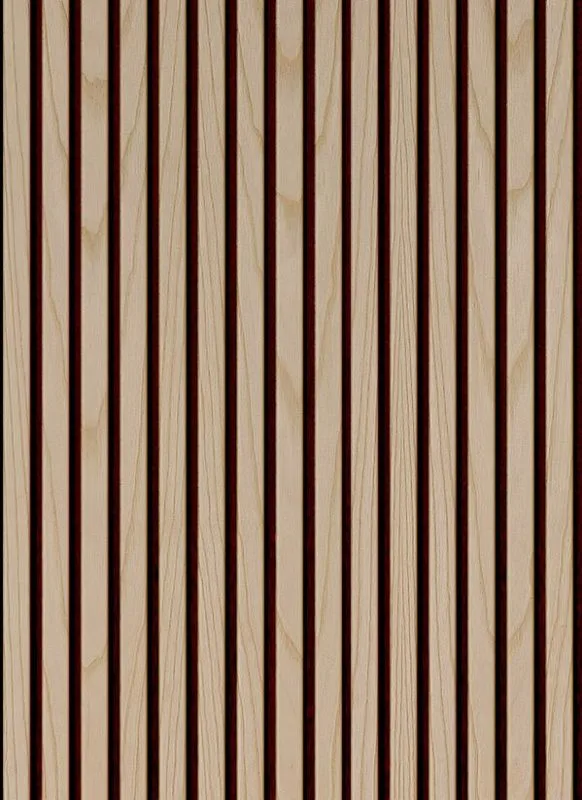 The wood-look acoustic panels are made of MDF and 10mm veneer lining and mounted on 12mm black polyester panels. They are available in oak, ash and american walnut veneers, with dimensions 22 x 2400 x 600 (mm) and 3000 x 600 x 22 (mm).